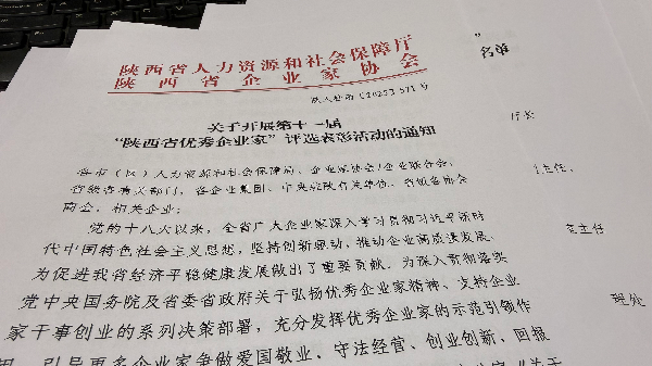 陜西省人社廳等部門(mén)關(guān)于開(kāi)展第十一屆“陜西省優(yōu)秀企業(yè)家”評(píng)...